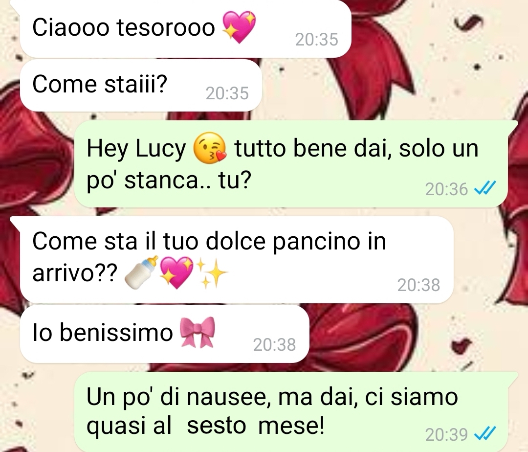 Questa chat è stata la goccia che ha fatto traboccare il vaso. Io davvero spero che la mia gravidanza e il mio futuro da mamma non mi portino mai a perdere il senso della realtà come è successo a lei.