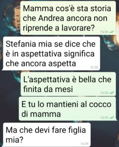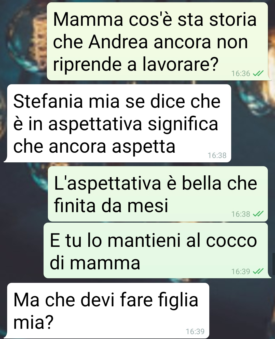 Non c’è cosa peggiore di avere un fratello che vale zero. È il tuo sangue, i tuoi stessi genitori, condivide il tuo dna ma è una persona di una pochezza infinita. E mi fa una rabbia atroce, perché comunque gli voglio bene, e sono mesi che mi rodo l’anima per questa situazione. Forse mi devo rassegnare, per il mio bene. Ma non voglio lasciare mia madre alla sua mercè. Io ho 41 anni e dopo tutta la trafila degli studi ho trovato lavoro non proprio nei pressi del paese natale. Andrea ha 38 anni e ha lavorato per 10 anni in una ditta privata, grazie alla intercessione di uno zio. Nostro padre è morto l’anno scorso, persona burbera ma retta e poco incline all’assistenzialismo. Ed ecco che dopo neanche 6 mesi dalla sua morte Andrea prende un’aspettativa. Che è presto diventata una esistenza sul divano di mamma da saprofita. Non so come intervenire. Questa è la conversazione con mia madre con lui sul divano. Consigli?”