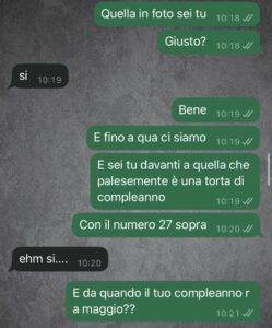 Certo, qualche stranezza ogni tanto c’era, come in tutte le coppie. Alcune cose non mi tornavano del tutto, ma ho sempre lasciato correre perché non sono mai stato un tipo sospettoso, preferisco fidarmi della persona che ho scelto di avere al mio fianco. Tutto ciò è durato. Fino a ieri. Quando, per un piccolo dettaglio, le cose hanno iniziato a vacillare.