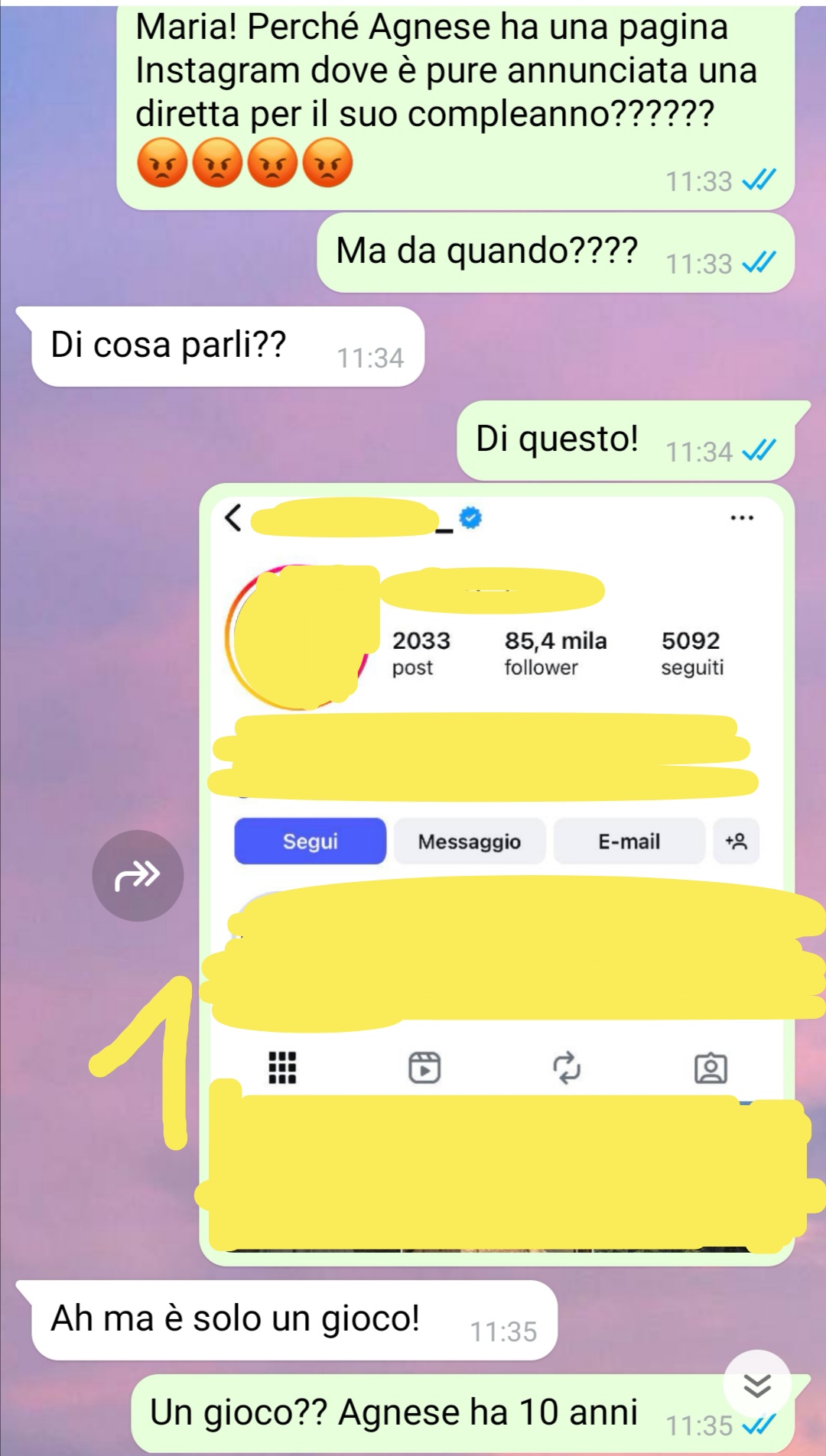 Io non avevo idea che mia figlia avesse una pagina Instagram dato che ha solo 10 anni e già mi stranisco. Così le chiedo subito di farmi vedere l’account ( io non ho IG, ho solo Facebook) e quando vedo quella pagina… mi sento svenire.