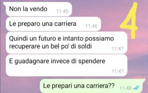 Sono in ufficio quindi non posso fare più di tanto, ma corro subito in bagno a scrivere alla mia ex e a chiedere spiegazioni. Anche perché, sempre attraverso quella pagina, guardate che cosa scopro!!!”