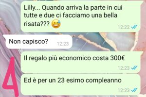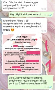 L’altro giorno ho ricevuto un messaggio da parte di una mia amica che si chiama Liala ma che chiamiamo tutti Lilly. Mi chiedeva se avessi visto l’invito al suo compleanno che aveva scritto sulla chat di gruppo e se io ci fossi, visto che non avevo ancora risposto.