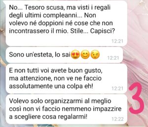Le rispondo che penso di esserci e lei allora mi dice che proprio per questo motivo mi invia una cosa utile per partecipare alla festa.