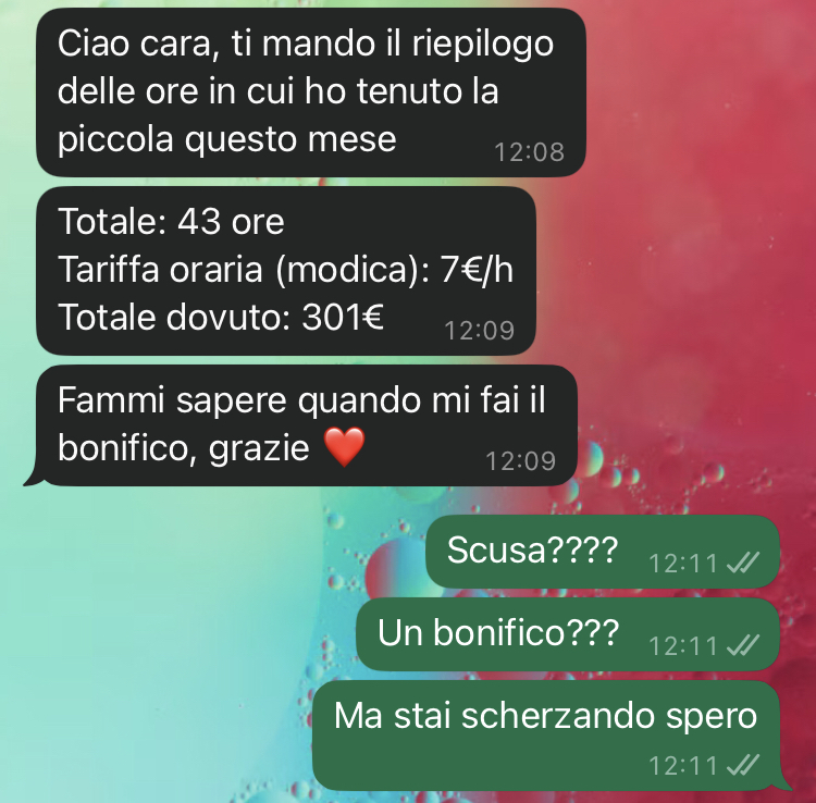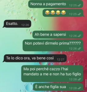 Non sto scherzando. Vi lascio qui sotto gli screen, perché io sono ancora sotto shock e ho bisogno che qualcuno mi dica se è normale tutto questo o se ho sposato il figlio di una pazza. Secondo me la seconda… alla fine ho preso una decisione drastica, difficile, ma giusta.