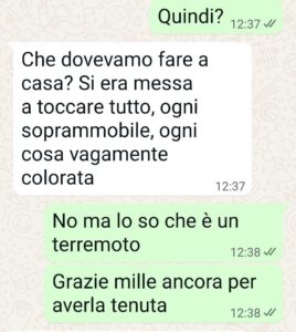 ecco la chat. E vedete di fate le zie per bene!! Che nell’ ecosistema familiare, anche se a poco, servite pure voi.”