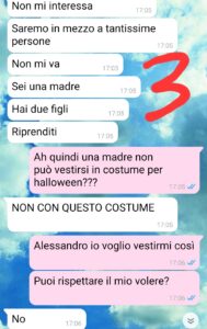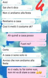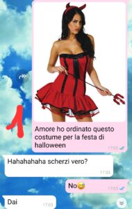 “Ciao mi chiamo Arianna e mio marito non voleva che andassi alla festa di halloween organizzata dai nostri amici col costume che ho scelto. Siamo sposati da 10 anni e abbiamo due bambini di 7 e 5 anni. Quest’anno i nostri amici hanno organizzato una festa di halloween in un locale e io per l’occasione avevo deciso di comprare un costume carino. Ne avevo scelto uno che mi è piaciuto subito e ho mandato la foto a mio marito. Io faccio una vita tutta casa, lavoro e bambini. Per una volta che c’è una festa, un’occasione per divertirsi e stare spensierata, devo sentirmi dire che non posso uscire di casa col costume di halloween che ho scelto. Come se mi rendesse ridicola. Sinceramente mi sento offesa e per questo non asseconderó mio marito. Voglio godermi la festa come merito e basta. È tanto assurdo che abbia scelto questo costume? Io non capisco.”
