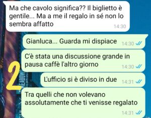 “Ciao a tutti, quella che vi invio è una storia che è nata nell’ufficio in cui lavoro e all’inizio a me personalmente dava parecchio fastidio, perché mi sembrava una forma di bullismo da parte di alcuni colleghi nei confronti di un altro.