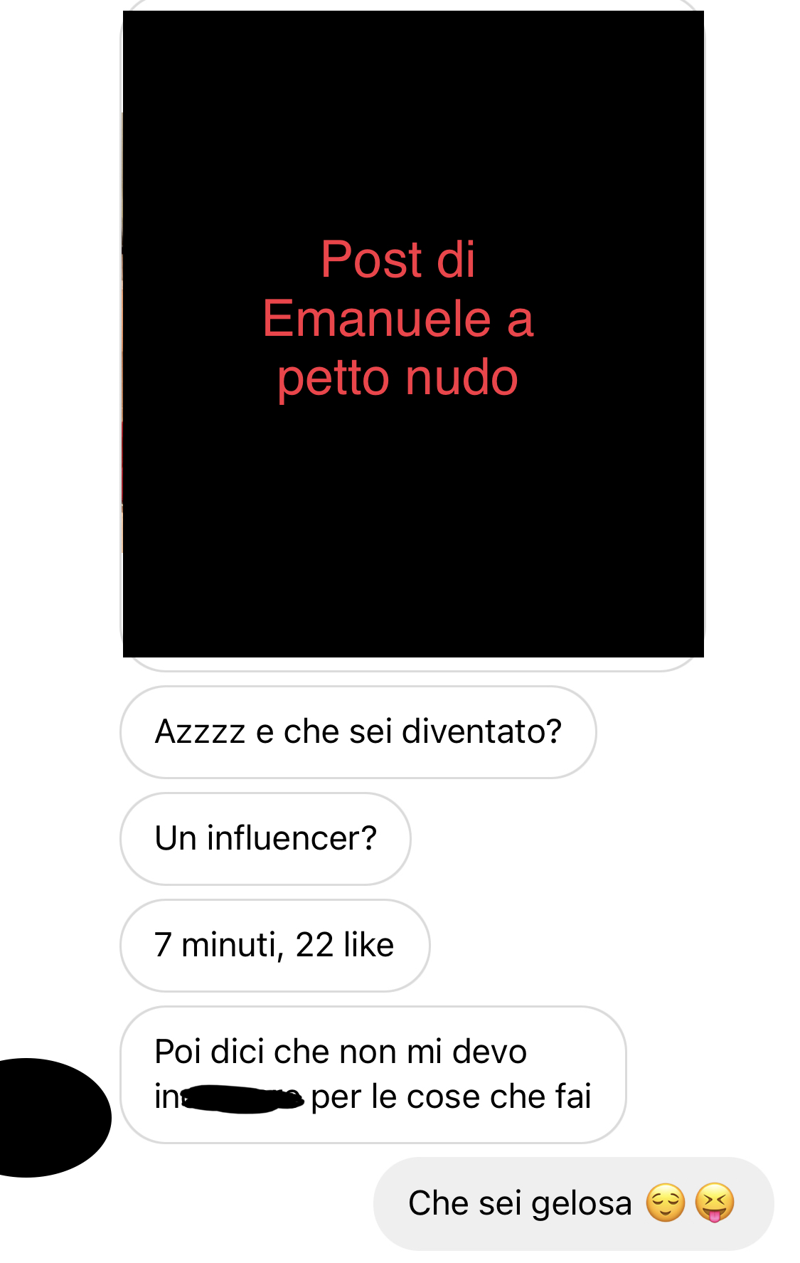 “Salve a tutti. Mi chiamo Emanuele e la mia ragazza della chat si chiama Giada. Qui abbiamo litigato e anche pesantemente perché io mi sono stancato.