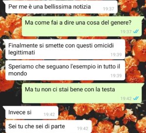 Sono veramente allibita. Con certa gente è decisamente meglio tagliare da subito tutti i ponti e tutti i contatti non appena si scoprono queste cose.”.
