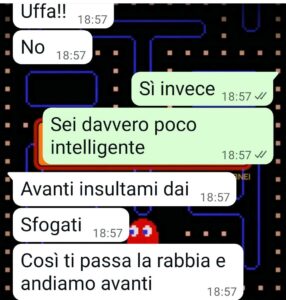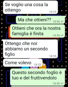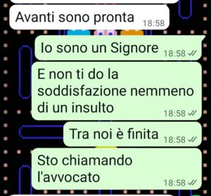 Mi ha chiesto una cosa assurda. Una cosa che io da Signore non farei mai. Io sono un Uomo e sono veramente fiero di esserlo. Non ho bisogno della violenza per dimostrare il mio essere Uomo e non mi rovino la vita per una persona che è solo e soltanto una stupida. Questa è la mia storia. Questo è come ho deciso di agire. Non la perdono, certo, ma non le darò nessuna soddisfazione. Ecco cosa ho fatto.”