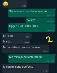Che lo capisca via chat o via sfratto, ma oggi rientro da solo.”