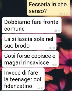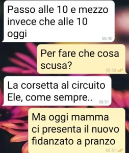Un saluto da Eleonora pagina di spunte. Ho 41 anni e una sorella di 42, Elisabetta, ed è con lei che ho avuto questa discussione che vi posto. Nostra madre è rimasta vedova 3 anni fa. Papà fu colpito da un infarto fulminante e non c’è stato nulla da fare. Aveva 65 anni, parlava sempre di come non vedeva l’ora di andare in pensione per fare il nonno a tempo pieno… Povero papà. E la mamma la settimana scorsa ci ha informato che da qualche mese frequenta un uomo, Paolo. Ci ha fatto vedere delle foto e ci ha invitato a pranzo per conoscerlo. Non ci vedo nulla di male, anzi. Elisabetta non era tanto contenta, ma pensavo più per la sorpresa, quelle cose inaspettate che ti irrigidiscono. Invece oggi eccola in tutto il suo pensiero. Che evidentemente ha sviluppato e fortificato in questa settimana. Come mi devo comportare? Io voglio che mia madre sia felice, il resto non conta. E la chat è di oggi, non del 1800…”