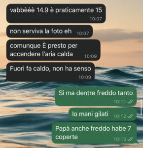 Io mette qui sotto la chat di oggi, così voi vede e forse voi può dire vostra opinione. Io solo chiede rispetto, niente altro.”