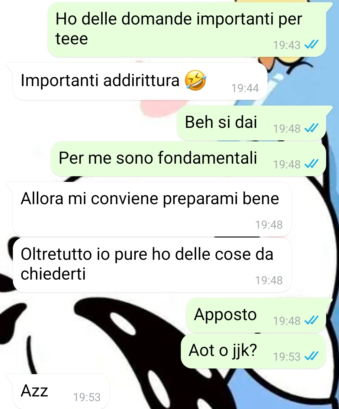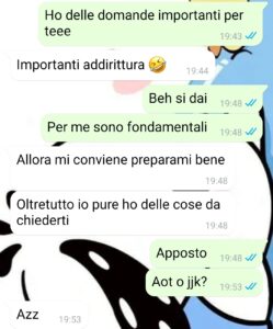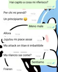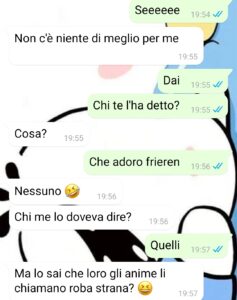 “Ciao, sono Anna e ho 33 anni. Molti mi dicono sono grande, che sto invecchiando, che mi devo trovare un uomo che stia con me, che dovrei fare dei figli perché poi quando sarò anziana cosa farò? Chi si occuperà di me quando sarà il momento? E tanta altra roba del genere. Ma non è che ste cose me le dicono soltanto i miei parenti, anzi a quelli mica importa più di tanto, ma sono le mie amicizie. Siccome sono l’unica single di tutta la comitiva e sono tutti o sposati o anche con figli al seguito, pensano di potermi fare ste ramanzine ogni singola volta che ci vediamo. E a me non fa piacere. Però è vero che vorrei trovare una persona con la quale stare ed è per questo che una coppia di amici mi ha trovato un tipo che secondo loro è perfetto per me. Un appassionato di “roba strana” come la chiamano loro, ovvero roba nerd da film a serie fino agli anime. Roba strana, ok. Fatto sta che conosco sto ragazzo, usciamo insieme e sembra andare tutto bene. Finché, durante una chiacchierata in chat, lui decide di rivelare la sua vera natura e la cosa non mi fa piacere.”
