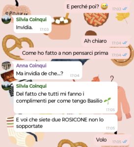 Qui abbiamo finalmente una camera singola per ciascuna e devo dire che, dopo due anni di condivisione degli spazi, non è per niente male come cosa. Solo che la casa ha tre stanze, quindi tre inquilini. Ed ecco il nostro primo, grande problema. Silvia. Anche lei studentessa fuorisede, più piccola di noi di due anni. Silvia è… particolare. Ha mille “passioni” che sfociano un po’ in fissazioni e una grande mania di persecuzione. Tra queste sue passioni c’è ovviamente quella del giardinaggio. Il punto di forza di questa casa sono i balconi e lei, da quando ci siamo trasferite qui a fine agosto, ne ha fatto il suo regno diciamo… il che va bene, cioè io uso il balcone solo raramente, ma il problema è che ad un certo punto una delle sue piante, Basilio, sparisce. Ed ecco il giallo. lei, convintissima che sia stata una di noi, parte con le accuse… non dico altro, godetevi la lettura.