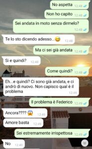 “A volte, un’immagine ti si fissa in testa e non ti lascia più. Per me, è quella di un casco rotto sull’asfalto, un pezzo di plastica e polistirolo che un tempo proteggeva la testa del mio migliore amico. Non riesco a togliermela dalla mente. È lì, tra i miei pensieri, ogni volta che vedo una moto. Il mio amico, Federico,bnon c’è più, se n’è andato su due ruote, lasciando un vuoto che fa male, anche se sono già passati due anni. E da quel giorno, la mia vita è cambiata. Non sono più lo stesso, e la mia fidanzata, da certi punti di vista, ne sta pagando il prezzo. La mia paura è diventata la sua gabbia perché non riesco più a sentirmi libero, e a farla sentire libera come prima. Soprattutto quando si parla di moto. Non capisco se sto sbagliando oppure no. In ogni caso, l’altro giorno mi manda una foto e mi dice che aveva fatto un giro in moto e che ne avrebbe fatti altri. Sono stato subito molto male, mi si è annebbiata la vista, ma dovevo affrontare la situazione. E così ho fatto. Anche se non è per niente facile affrontare il discorso con lei.”