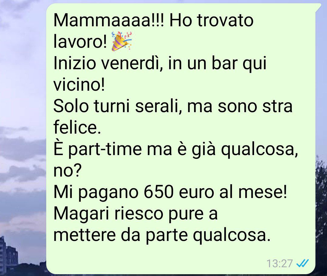 Ma mi dava un minimo di autonomia, la possibilità di togliermi qualche sfizio e, soprattutto, di non dover più chiedere soldi a mia madre anche solo per una pizza.