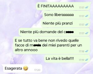 Convinta di essermi finalmente liberata dagli interrogatori vari per almeno un altro anno scrivo al mio ragazzo, ma lui non solo non sta dalla mia parte, ma se ne esce pure con una sorpresa che per me è un incubo.