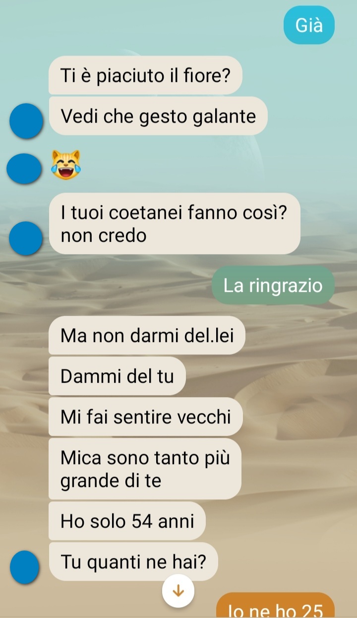 Il problema è che si è lasciato da poco. Cosa me ne importa a me? Nulla assolutamente nulla. Ma è in crisi e dopo tanti anni è tornato single e pensa di avere ancora venti anni. Quindi mi fa le moine quando vado da lui, anche davanti agli altri clienti facendomi letteralmente cadere la faccia a terra. Un po mi fa pena pero cavolo c’è un limite. Io faccio l’educata e non voglio offendere o mettere in difficoltà mia mamma. Io vorrei solo andare lì prendere la mia carne e andarmene. E no farmi una chiacchierata davanti agli altri clienti, ricevere domande imbarazzanti sul mio lavoro, su se sono ancora fidanzata o meno.