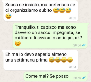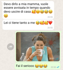 “Ciao ragazzi di SpunteBlu! Mi chiamo Carlotta e ora vi inoltro gli screen di una chat assurda che ho avuto più di due settimane fa con Guglielmo, un ragazzo che ho conosciuto su un’app di incontri. All’inizio sembrava un tipo a posto, siamo anche andati a bere qualcosa in centro per conoscerci meglio. Fino a qui tutto bene finché non sono tornata a casa e mi sono trovata un suo messaggio, un po’ esuberante se devo dirla tutta, ma ho chiuso un occhio anche perché prima mi ero divertita. La chat è poi degenerata completamente, ma non vi voglio spoilerare assolutamente nulla, vi dico una sola parola: MAMMA. Con le mie amiche ridiamo ancora di tutto questo e spero di strappare un sorriso anche a voi che leggerete questa chat, ma se inizio a pensarci profondamente non posso che provare una certa pena per Guglielmo”.”