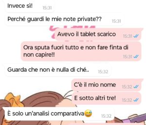“Mi chiamo Marta, ho 27 anni e sono (ero!) fidanzata con Mauro, un programmatore nerd e, come ho scoperto poi, anche una notevole testa di…cavolo. Quando dico che non avrei mai dovuto guardare il suo tablet, lo penso davvero. Non perché avessi paura di quello che avrei trovato, ma perché una parte di me sapeva già che qualcosa non tornava. Da mesi avevo la sensazione di essere osservata più che ascoltata. Ogni discussione finiva sempre allo stesso modo, con lui calmo, composto, come se sapesse già dove sarei arrivata. Io pensavo fosse maturità. Pensavo fosse equilibrio. La nota era aperta. Non ho dovuto cercarla. C’era il mio nome in alto, seguito da date, punti elenco, frasi brevi e precise. All’inizio non capivo cosa stessi leggendo. Poi ho visto gli altri nomi. Altre donne. Confronti. Numeri. Difetti fisici. Difetti emotivi. Cose che avevo sempre faticato ad accettare di me stessa, scritte con una freddezza che mi ha fatto venire la nausea. In quel momento ho capito che mentre io parlavo, piangevo, cercavo di spiegarmi, lui stava prendendo appunti. Non per capirmi meglio, ma per gestirmi. Ho fatto uno screenshot e gliel’ho mandato. Non per chiarire. Ma per vedere fino a che punto fosse disposto a difendere quello schifo.”