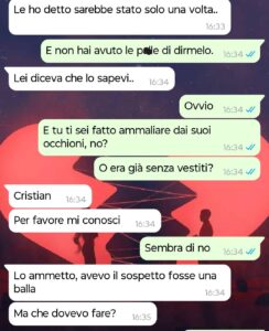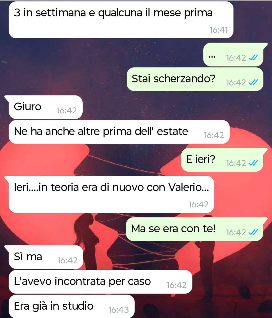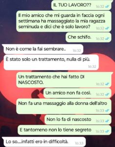 In questa chat con Marco sono però saltati fuori dettagli che mi hanno fatto capire che la storia non era così semplice come sembrava. E soprattutto che forse non conoscevo né la mia ragazza né il mio amico come credevo. Leggetela fino alla fine, perché quello che viene fuori vi farà capire perché ho perso la fiducia in entrambi e ancora oggi mi chiedo come sia possibile che non sia riuscito a vedere quel che stava succedendo accanto a me e sotto ai miei occhi.”