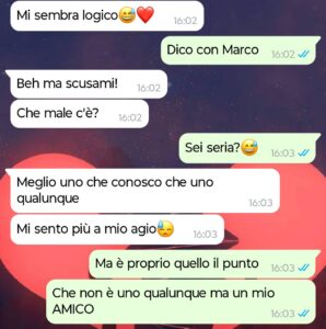 Questa chat è la prima crepa. È il momento in cui ho iniziato a capire che la persona che avevo accanto non mi stava dicendo la verità, e che quello che pensavo fosse “niente di grave” era in realtà molto più grosso. Leggetela bene, perché è solo l’inizio. Nel giro di un pomeriggio ho visto il mondo crollarmi addosso. E ora non so nemmeno se ho qualcuno con cui poter parlare e sfogarmi.”