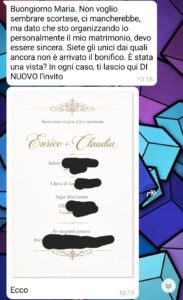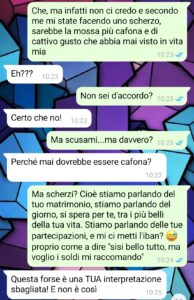 “Ci sono gesti che ti fanno rivalutare una persona in pochi secondi. Io ero convinta di avere un’amica, qualcuno con cui avevo condiviso pezzi di vita, risate, confidenze. E invece mi sono ritrovata a guardare il telefono con una sensazione strana addosso, come se qualcosa di invisibile si fosse incrinato all’improvviso. Forse è colpa del periodo che viviamo: siamo così abituati a parlare di soldi, costi, budget, che finiamo per dimenticarci il resto. Anche i momenti che dovrebbero essere simboli di amore e condivisione vengono trattati come transazioni, come se il valore di una relazione potesse essere riassunto in una cifra. Eppure io sono cresciuta con un’idea diversa: i matrimoni non erano vetrine, ma promesse; non erano liste, ma abbracci; non erano conti, ma emozioni. Mi chiedo spesso dove sia finito il buon gusto, l’educazione, quella sottile sensibilità che ti fa capire cosa è opportuno e cosa no. Oggi sembra tutto lecito, tutto giustificabile, purché sia comodo o redditizio. Certo, tutto mi sarei aspettata tranne che di ricevere un qualcosa di così assurdo da Claudia, un’amica di vecchia data.”