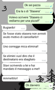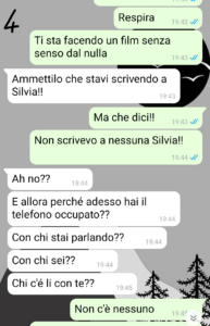 Allora io sto con Rachele che ha davvero tanti lati positivi ma un problema grave: è di una gelosia assurda!! Lei vede possibili tradimenti ovunque!! Per lei la spiegazione a ogni cosa è una relazione segreta che io avrei con un’altra donna.. ma anche le cose più sciocche!! Le basta che io conosca un ristorante fuori mano in cui non siamo stati insieme che subito parte con il film!!