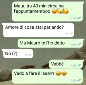 “Ciao ragazzi, sono Francesca e questa è la chat che ho avuto con quel pazzo di Mauro, il mio ragazzo. Ci conosciamo da quasi quattro anni, e solo da poco è nata una relazione tra noi. Con lui c’è sempre stato un rapporto di intesa e di rispetto reciproco. Inoltre io mi sono innamorata di Mauro perché mi ha sempre fatta ridere come non mai, ci sono volte che mi manca il respiro dalle risate. Ma proprio questo suo modo di essere quasi sempre scherzoso, mi confonde. Faccio fatica a volte a capire le sue intenzioni dietro una frase o sguardo, lasciandomi perplessa e confusa. E questa chat ne è la dimostrazione. Il litigio era imminente.