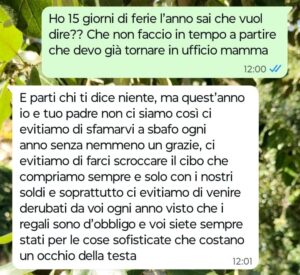 Leggi le ultime storie Ingombrante Natale vegano Il contratto La storia di Leandro Tu non vieni Fidati di me Capodanno a Londra Il problema della richiesta Stipendi a confronto Per magia Prenotarsi A te e famiglia Fidanzata Sentenza L’amica ghostata Da amici Il cuculo Il Natale Nessuna obiezione Il colloquio conoscitivo