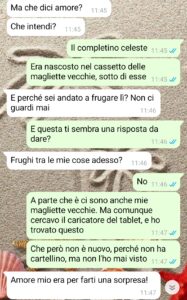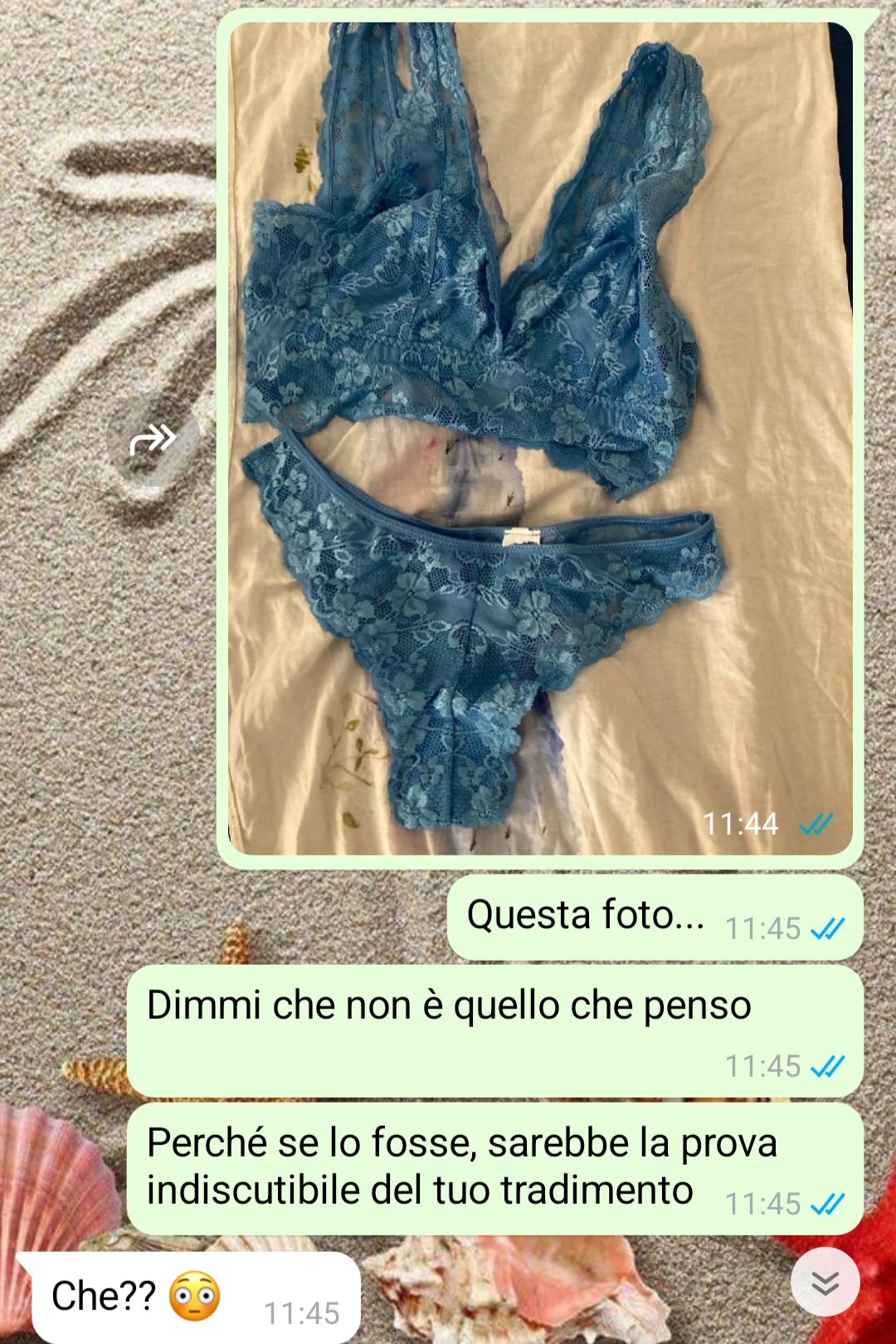 “Non avrei mai pensato di condividere una cosa del genere, ma a un certo punto ti rendi conto che tenerti tutto dentro non ti rende una persona migliore. Ti rende solo più stupido. Questa non è una storia di vendetta studiata a tavolino, né il racconto di uno che si crede furbo col senno di poi. È una chat successa in tempo reale, mentre cercavo di capire se quello che avevo davanti fosse solo una mia paranoia o l’ennesima situazione assurda in cui ti infili quando ti fidi troppo. Tutto nasce da un dettaglio minuscolo. Una di quelle cose che, prese singolarmente, non significano nulla. Un completino intimo, da quale però sono poi nate varie dinamiche più complesse. Ho deciso di mandare questa chat perché, mentre succedeva, mi sono reso conto che non stavo più discutendo per salvare una relazione, ma per capire che tipo di persona volevo essere io alla fine di quella storia. Subire? Far finta di niente? O smettere, una volta per tutte, di essere quello che incassa in silenzio? Leggete fino alla fine, poi ditemi: voi, al mio posto, come sareste usciti da questa situazione?”