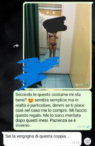 “Sono una ragazza giovane, con i suoi sogni, le sue aspirazioni ma anche le sue paure e difficoltà. Come tante, almeno fino a poco tempo fa, non accettavo il mio corpo. Non ho mai avuto patologie o condizioni troppo gravi, semplicemente ero sovrappeso. Forse sbagliavo, perché ormai tutti professano il volersi bene ad ogni costo con qualsiasi fisico, ma io non mi sono mai vissuta bene quella condizione. Non è che fossi messa così male, ma non mi piacevo, non riuscivo a vedermi allo specchio, a farmi foto, e non riuscivo ad andare al mare serena, pur amandolo. Quindi mi sono messa a dieta e dopo circa otto mesi di allenamento duro e di tanti ma tanti sacrifici a livello alimentare, ho ottenuto la forma che ho sempre sognato. Ora mi piaccio, ora sono davvero felice. E non nego che il mio fidanzato mi è stato vicino in questo percorso, che sicuramente non è stato facile neanche dal suo punto di vista. L’altro giorno, pur essendo inverno, volevo approfittare dei saldi per prendermi finalmente un costume che mi piacesse, e da portare con fierezza. Mi sono fatta una foto e l’ho mandata al mio fidanzato. Ma è stata l’inizio della fine.”