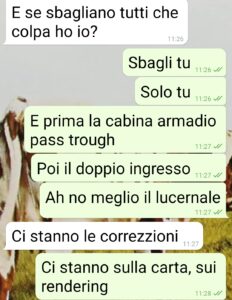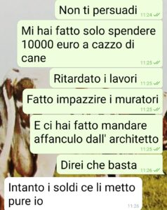 “Io non avevo capelli bianchi fino a marzo. Neanche uno. E nemmeno nella barba. E ho 33 anni. Ma da allora non li conto più i capelli bianchi. Me ne spuntano ciocche ogni giorno. Sto perdendo anni di vita come fossero forfora. E non perché ho deciso di sposarmi. No, quello è stato ok e lo sarà anche per il giorno del matrimonio (spero e prego), che è già tutto organizzato, tra 2 anni. Il problema è che sto costruendo casa. Questo è stato il grande errore. Decidere di costruirla da zero per farla a nostro piacere. Mio e di Silvia. La mia fidanzata. Anzi diciamo a piacere suo. Il dramma è che non capisce niente! Sta sempre in mezzo ai muratori, a cambiare idea e farli impazzire. Siamo già in ritardo di un paio di mesi sulla tabella di marcia. E con 10000 euro di spese in più! Tutto per le sue “CORREZZIONI”! Non so quanto potrò resistere. Questa discussione sul parquet poi, l’ultima della lista, mi ha veramente prosciugato. Cose dall’altro universo. ANDATE IN AFFITTO! O IN TENDA E SACCO A PELO!”