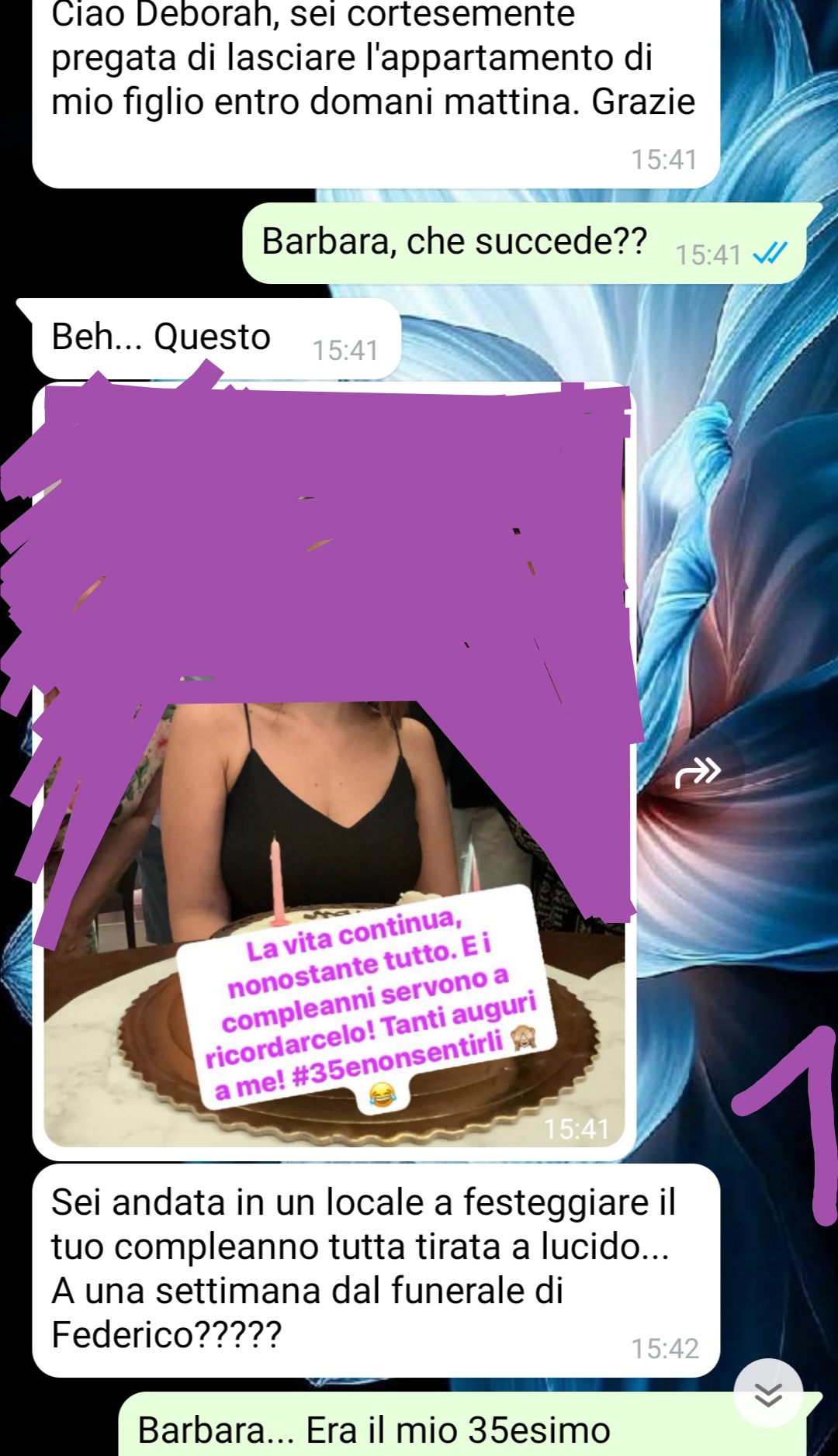 Mia suocera allora, vedendomi così disperata, ha deciso di venirmi incontro decidendo che posso restare a vivere lì gratuitamente. Mi si è aperto il cuore…l’altro giorno però è successa una cosa…ovviamente io sono completamente destabilizzata e non capisco quale sia il nesso tra ciò che è accaduto e la sua decisione successiva… vi prego aiutatemi a farle capire che ha frainteso tutto! Per favore…e che non ho fatto niente di male!”