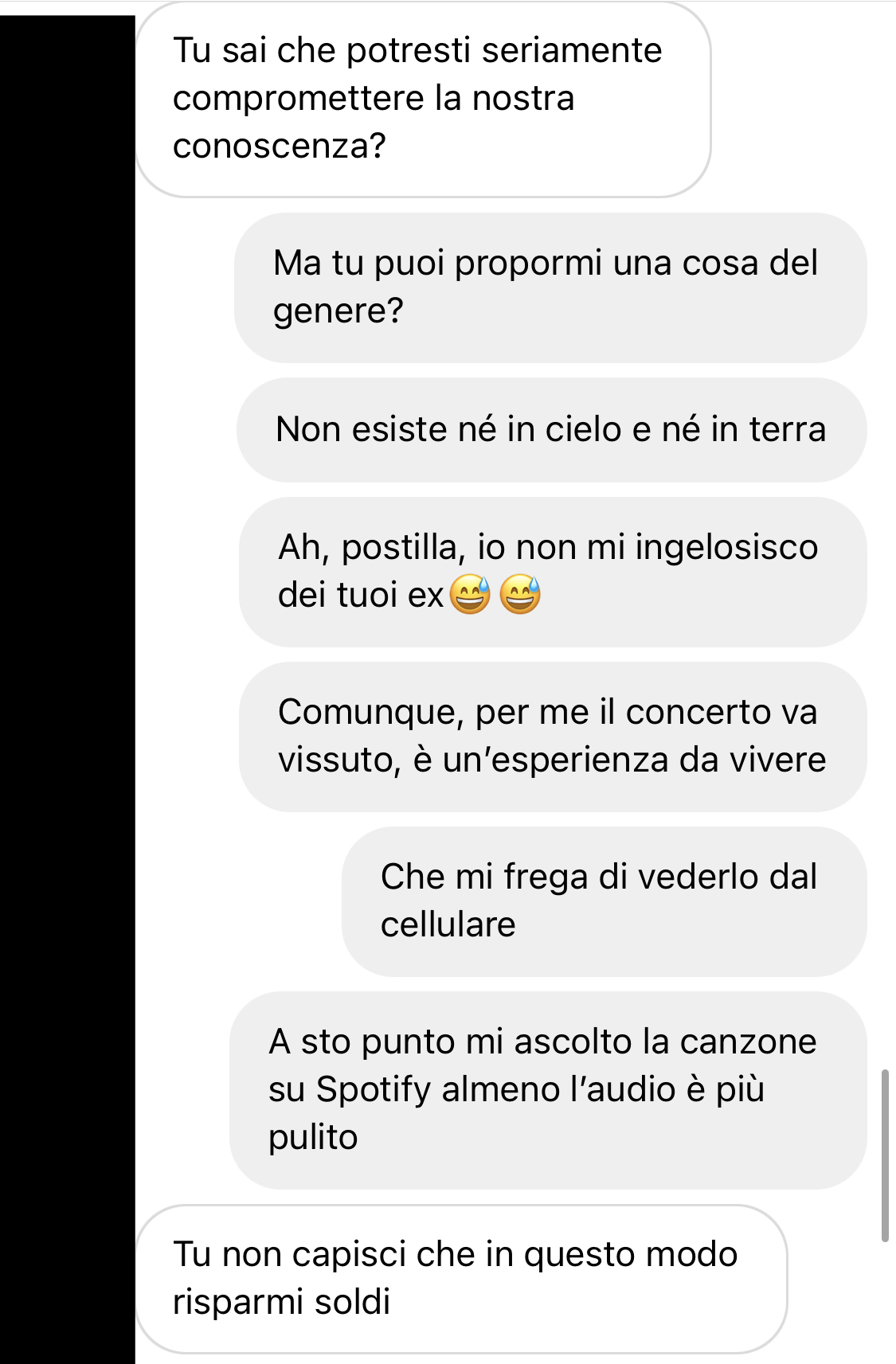 Vi dirò, era anche abbastanza interessante, e anche carina, però una domanda, una semplice domanda ha scatenato il putiferio. Mentre chiacchieravamo tranquillamente, stavamo parlando dei concerti dato che è iniziato il periodo intenso soprattutto di tutti quei concerti che sono stati rimandati a causa del Covid.