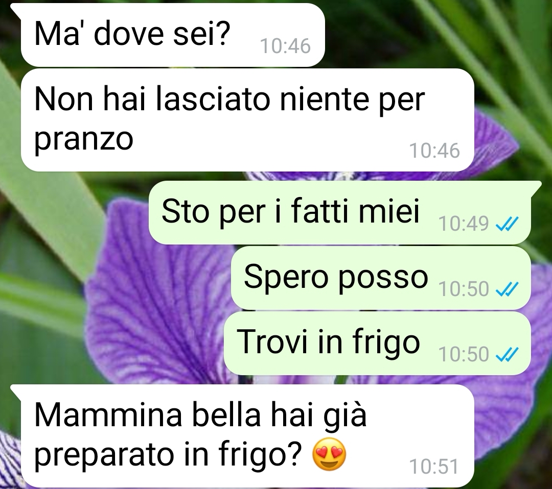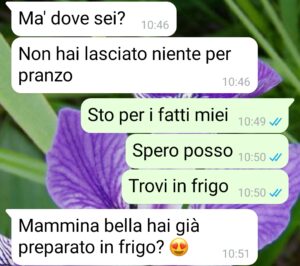 “Ciao SpunteBlu, vi mando questa conversazione con mio figlio di 37 anni che vive ancora con me e che, invece di preoccuparsi di trovare un modo per rendersi autonomo ha pensato bene di sollevare una polemica domestica che sinceramente mi ha fatto perdere la pazienza.