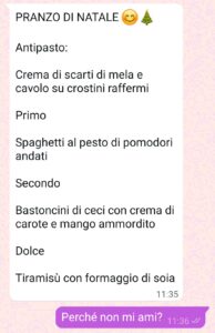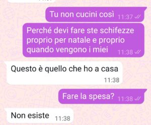 Mia moglie vuole fare un menu orribile, che nessuno vorrebbe mangiare, poi non sa neanche cucinare e quindi chissa che schifezze verranno fuori… io niente, veramente,… ma credo di avere trovato una soluzione e scrivo alla pagina perché di liti in famiglia i vostri follower sono i massimi esperti. E quindi mi affido a voi e vi chiedo esiste un volo diretto per un altro pianeta con partenza la vigilia??”
