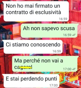 Niente, il finimondo… io non ci ho visto più e mi sono pesantemente agitata. Anche perché la signora mi ha detto una cosa che mi ha fatto svegliare dal coma in cui ero.”