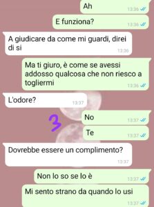 “Non ho mai creduto a certe stronzate. Tarocchi, energie, luna piena… per me erano solo scuse poetiche per non dire che una cosa non va, in maniera schietta e diretta, cercando quasi di addolcire la pillola prima di imboccare una pillola amara. Ma di dolce è arrivato quel profumo. Era un olio “energetico” che le aveva regalato un’amica, con la battuta che “fa innamorare chi ti guarda”. All’inizio ci abbiamo riso su, poi qualcosa è cambiato.