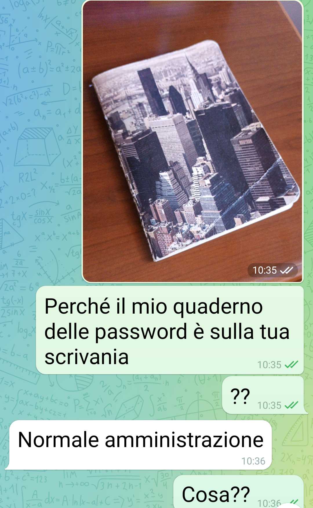questo quaderno È sempre al sicuro nel mio studio.  l’altro giorno però entrando nello studio del mio compagno Ho visto che sulla sua scrivania c’era il quaderno delle mie password.