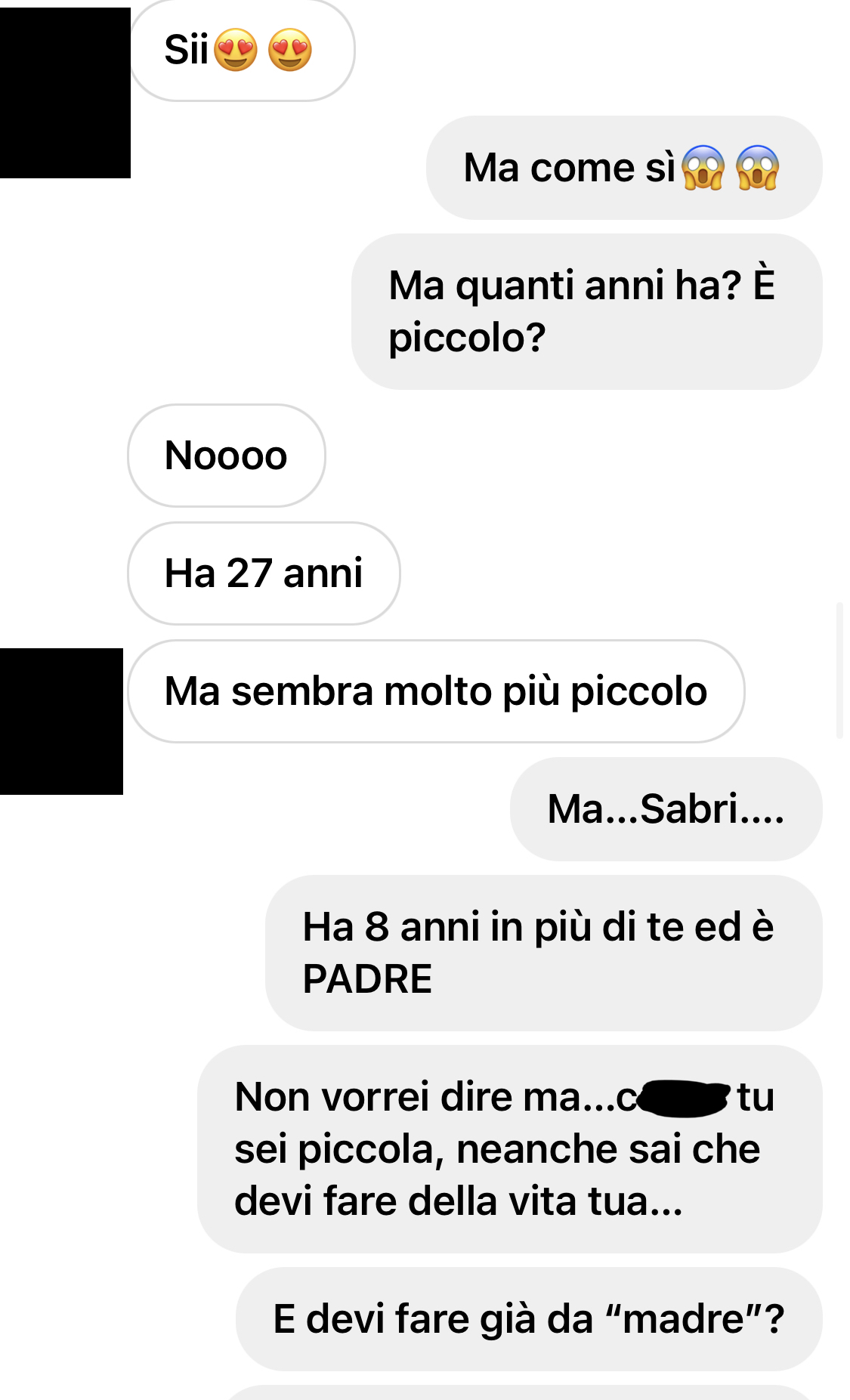 Vi prego se leggete questa chat, ditemi cosa ne pensate, perché io non so cosa pensare. Onestamente io vorrei aiutarla perché lei è stata plagiata secondo me. Aiutatemi anche voi. Ah e voglio precisare che non sono contro i ragazzi padre però secondo me Sabrina non sta proprio bene. Poi boh magari ho frainteso tutto.”
