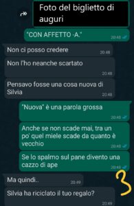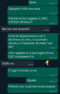 Fino alla verità: lo stesso regalo ha fatto il giro d’Italia ed è tornato nelle mie mani.