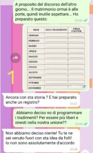 la chat che vi mando, infatti, arriva dopo giorni in cui già avevamo affrontato l’argomento a voce. E, forse avevo capito male io, ma mi sembrava che lei mi stesse dietro con il ragionamento. Per questo ho pensato di creare quello che vedrete e di mandarglielo. Ci tenevo a definire tutto prima del sì.