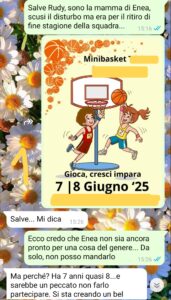 “Buongiorno. Sono la mamma di Enea, un bambino di 7 anni che quest’anno ha cominciato a giocare in una squadra di minibasket. Appassionandosi molto.