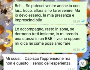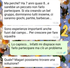 Così scrivo al suo allenatore e glielo comunico, gli dico che purtroppo non posso mandarlo. Ma lui risponde che è un’esperienza importante per il bambino, un’esperienza formativa.