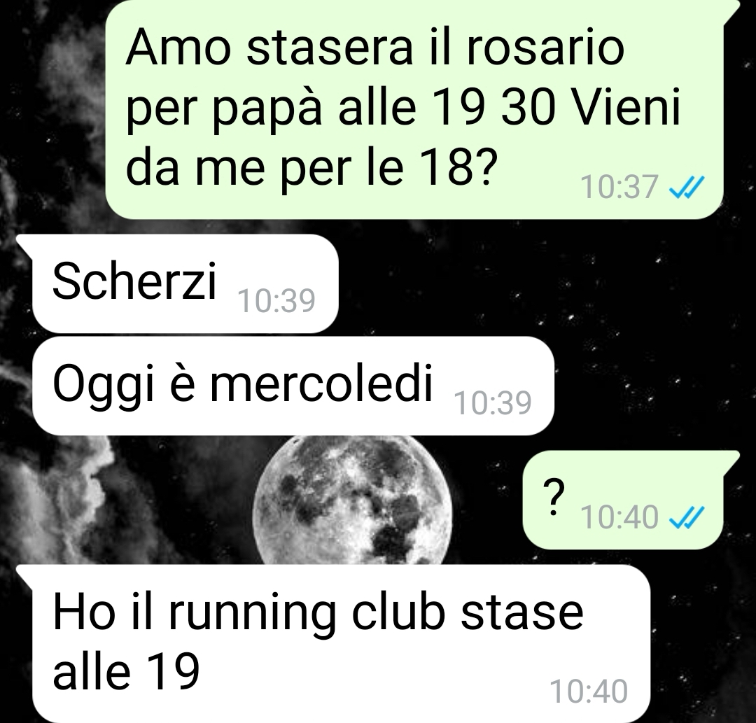 Mi bastava la sua presenza, nient’altro. Invece Roberto però… non ci sarà. Perchè la morte di mio padre è un “impegno extra” e il suo running club non può proprio aspettare…”