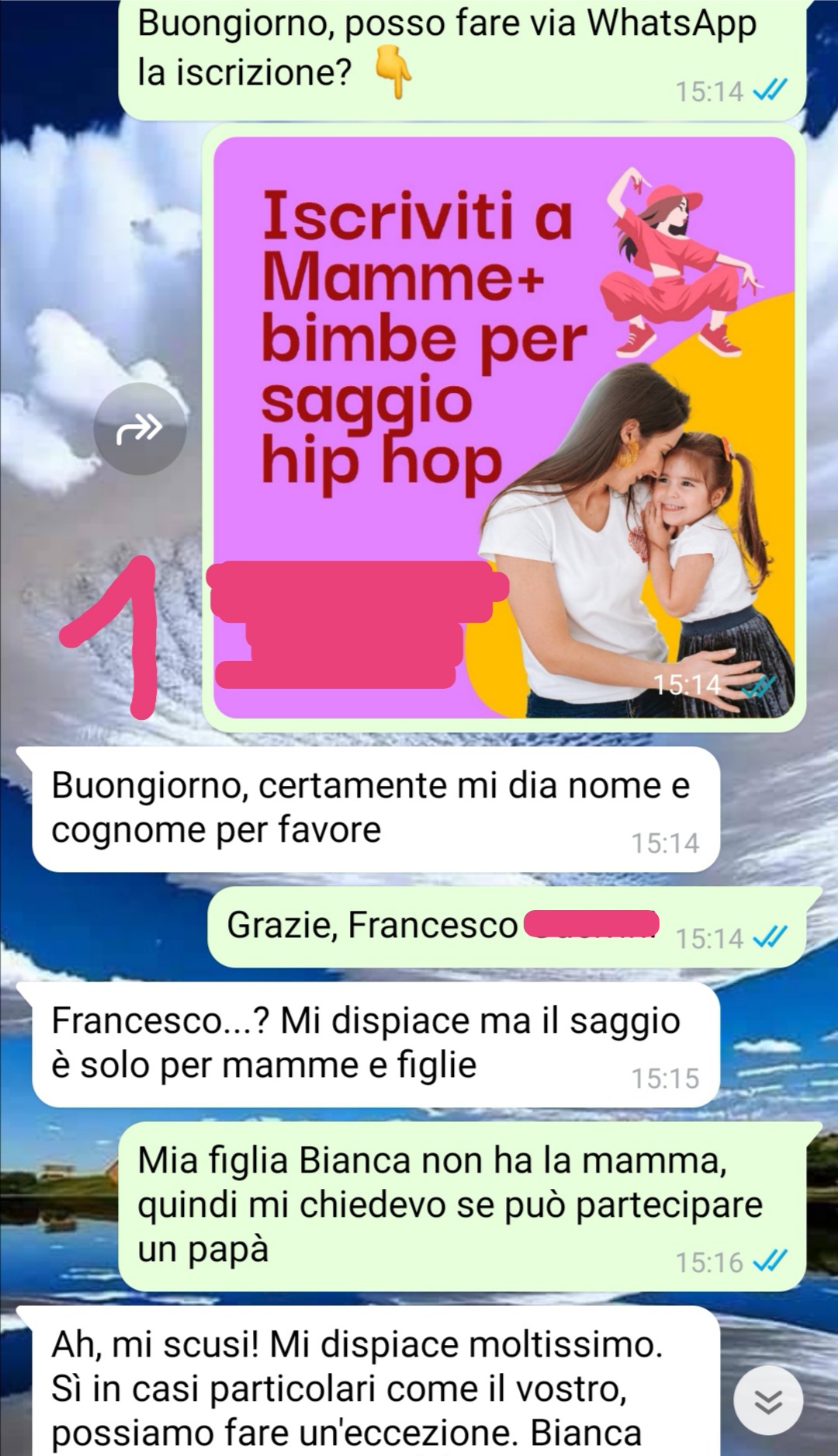 Sulla locandina inviata sul whatsapp della scuola c’era un contatto della segreteria alla quale scrivere per info o iscrizioni.