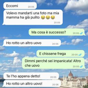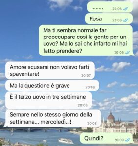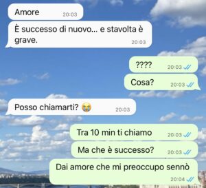 La conversazione che vi allego è solo la goccia che ha fatto traboccare il vaso, ma vi assicuro che in tre mesi ho fatto il pieno di stranezze per tutta la vita…”