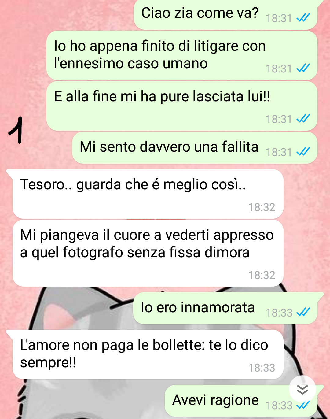E pensavo proprio a loro alcuni giorni fa, reduce dall’ennesimo naufragio sentimentale: anche perché, tra casi umani e relazioni instabili, mi vedo già in una casa piena di gatti a guardare sdolcinati film d’amore!!